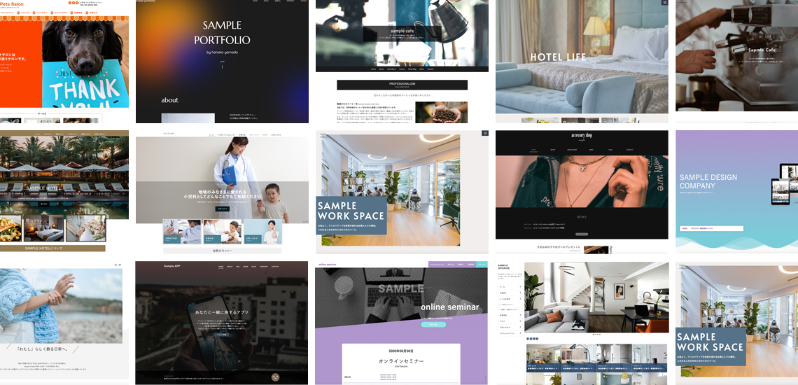 デザインの変更がいつでも簡単に行えます。搭載されているテンプレートは、企業サイトにも使用できるクオリティの高いものばかり!